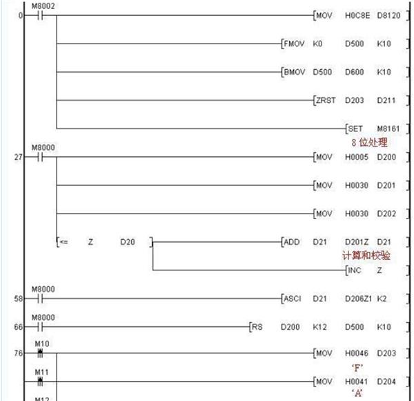 有關利用三菱變頻器協議與變頻器進行通訊的PLC程序如下: