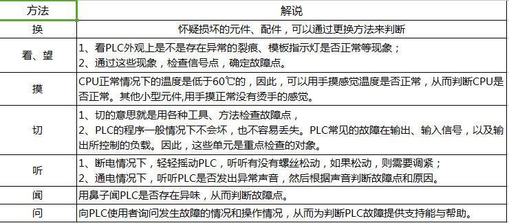 表 1 維修三菱PLC的一些方法總則