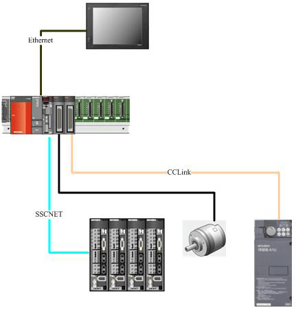 該配置首先需要通過以太網將視覺系統與三菱PLC相連,以便傳輸位置數據。同時需要一個提供插補功能的運動控制器將機械抓取裝置以最快的速度抓取物品,以提高生產效率。