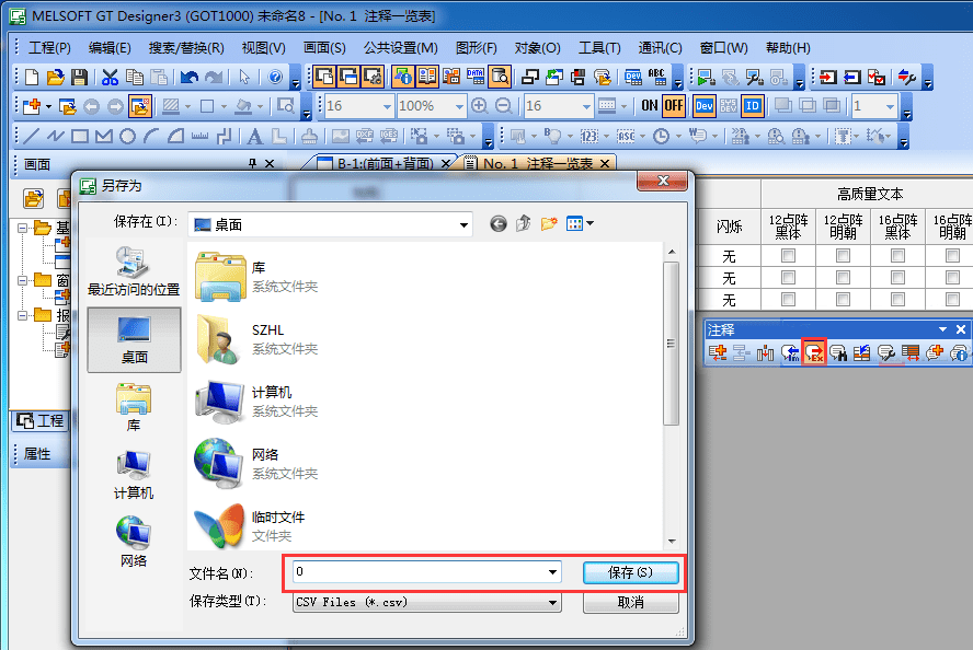 注釋導出,可將已編輯好的注釋導出為注釋文件(*.CSV)。
