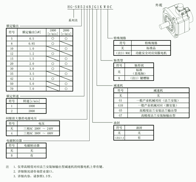 三菱伺服電機(jī)HG-SR201J規(guī)格參數(shù):